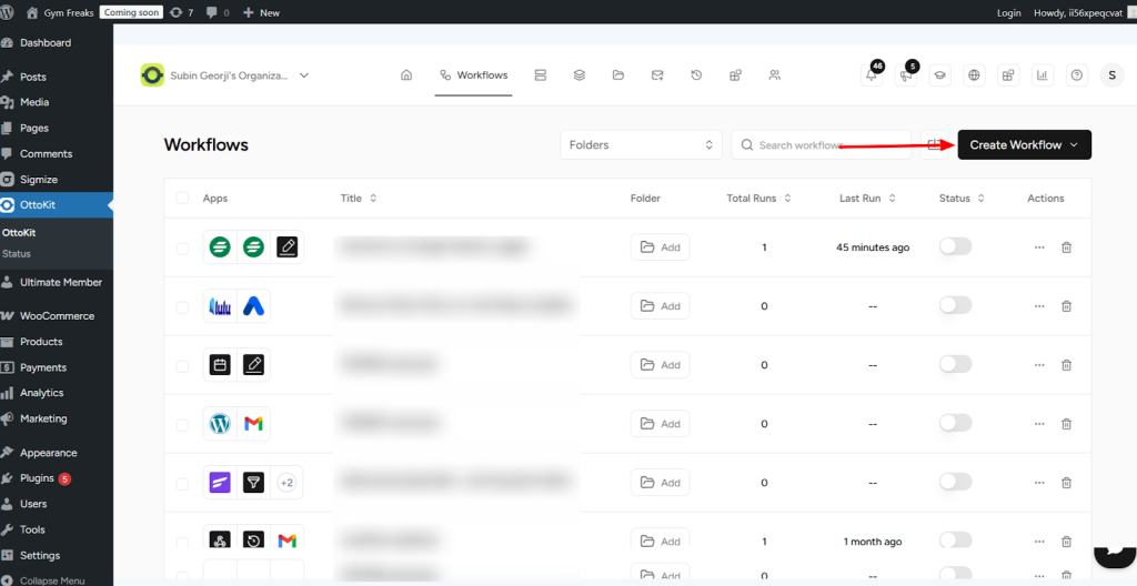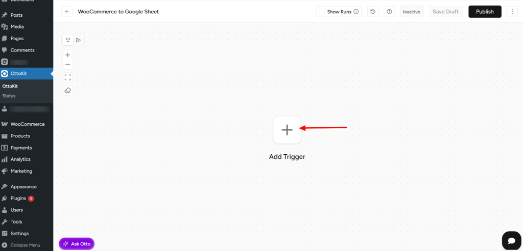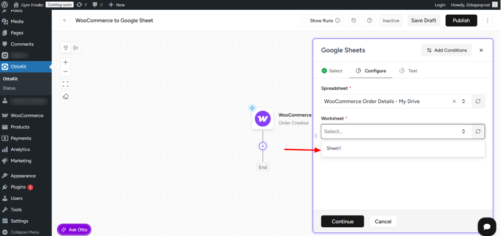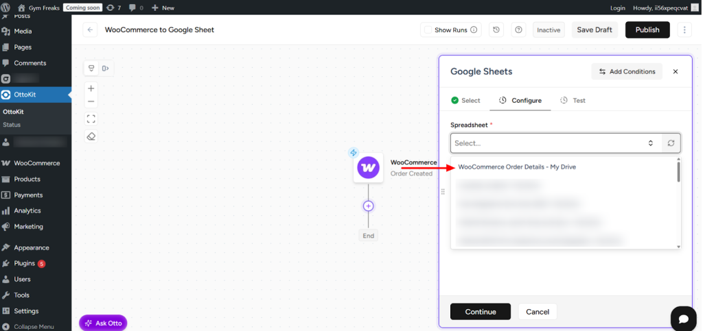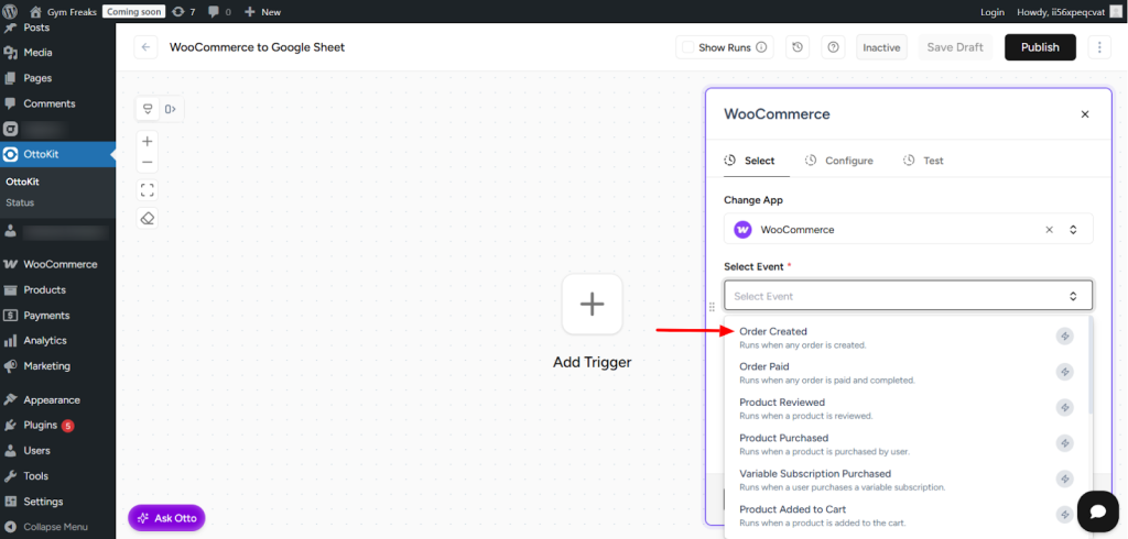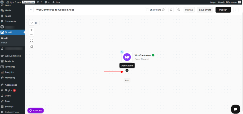 With OttoKit, you can create a workflow that automatically adds a new row to Google Sheets whenever a WooCommerce order is created.