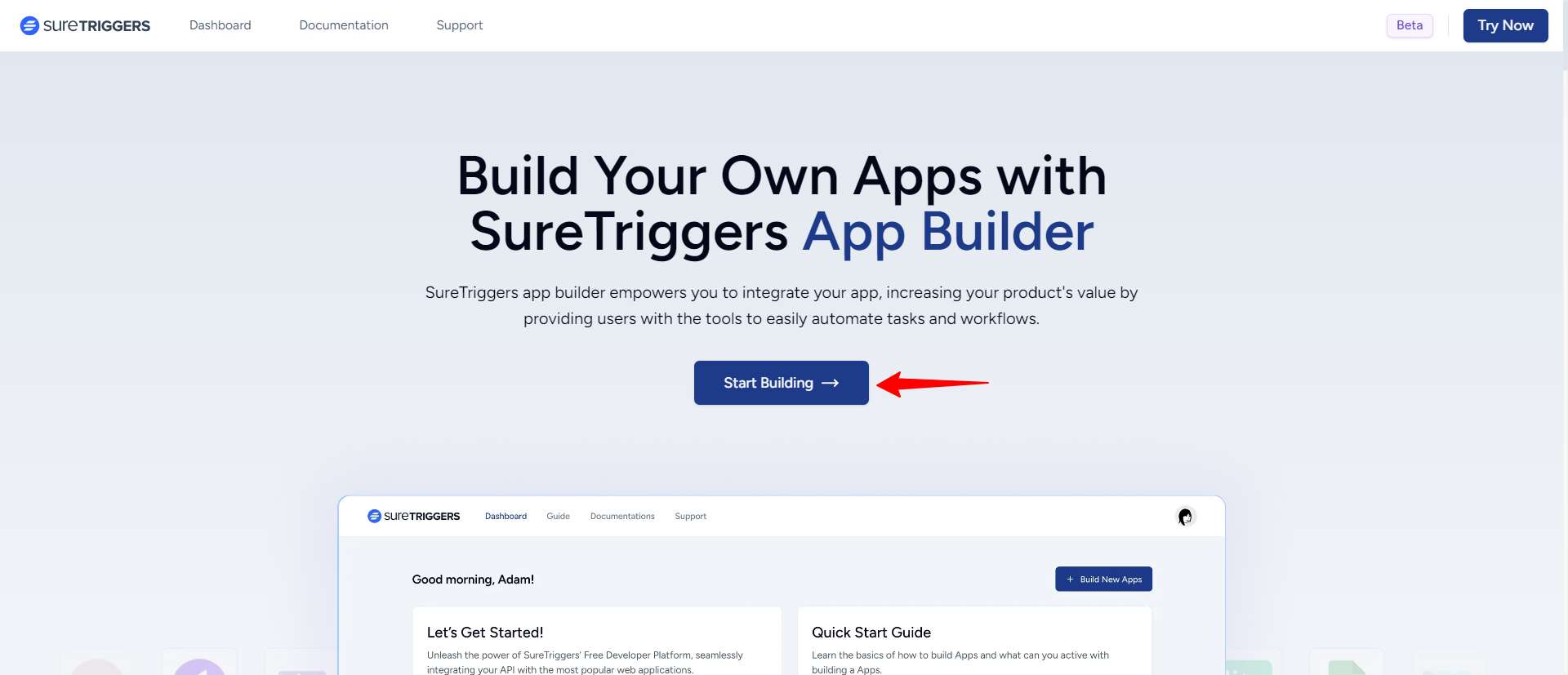 - On the main dashboard, locate and click on the Start Building option.