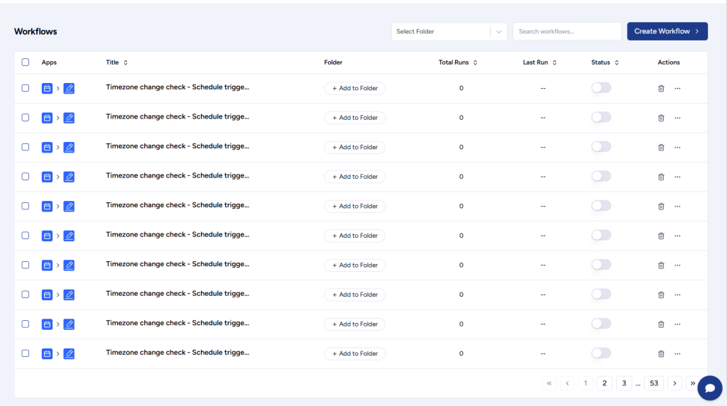 You can create new folders, move workflows into them, and even rename or delete folders based on your preferences. This helps maintain clarity and ensures workflows are easy to locate, especially as the number of workflows grows.