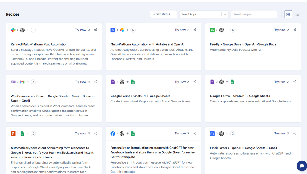 They serve as a starting point for users unfamiliar with building workflows or needing common automation. For example, a recipe could automate tasks like “Send a welcome email when a new user signs up” or “Add new WooCommerce orders to Google Sheets.”
