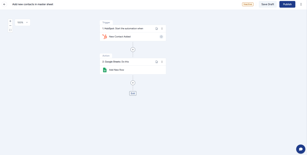 For example, you can set up a workflow to automatically add contacts into HubSpot, or send a Slack message when there’s a new HubSpot form submission.