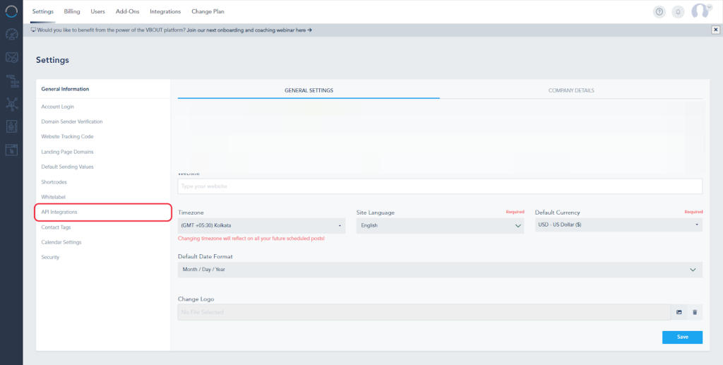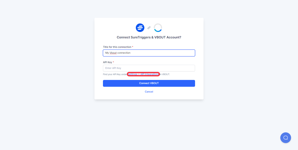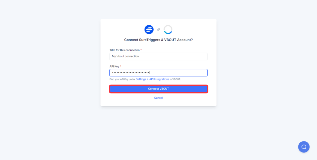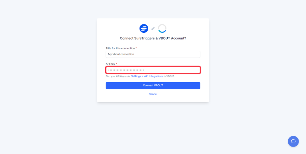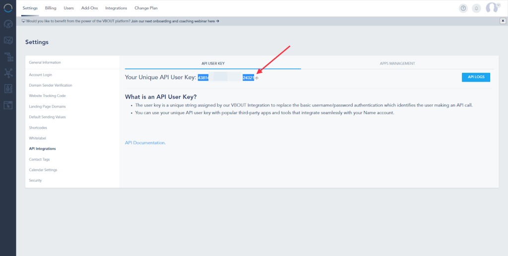 5. Now, you’ll need to paste the API keys in the second field. To get the API, go to your API integration settings in VBOUT.