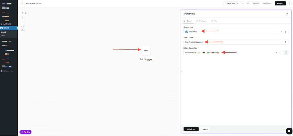 Good to know: WordPress automatically connects to OttoKit once you sign in. You won’t need to create a separate connection for WordPress; it’s ready to use right away.