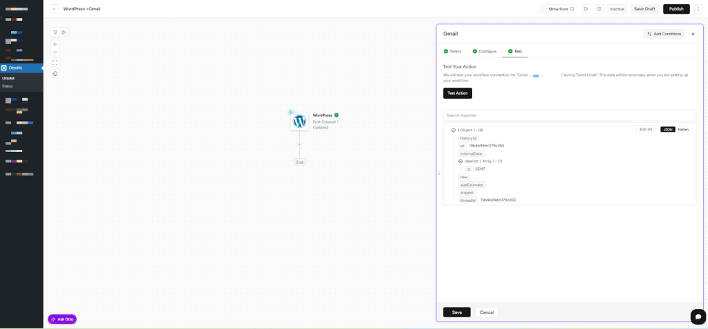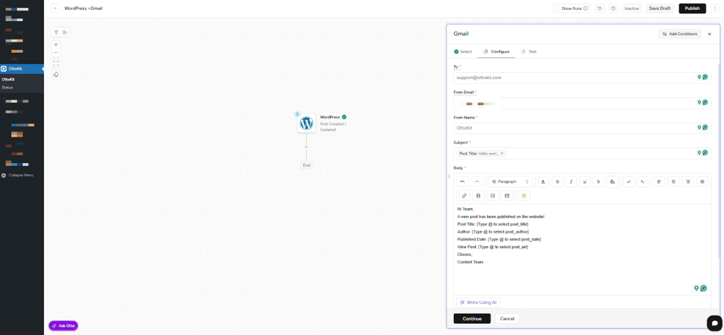 Now let’s instruct OttoKit on what to do with the post data—send an email notification via Gmail.