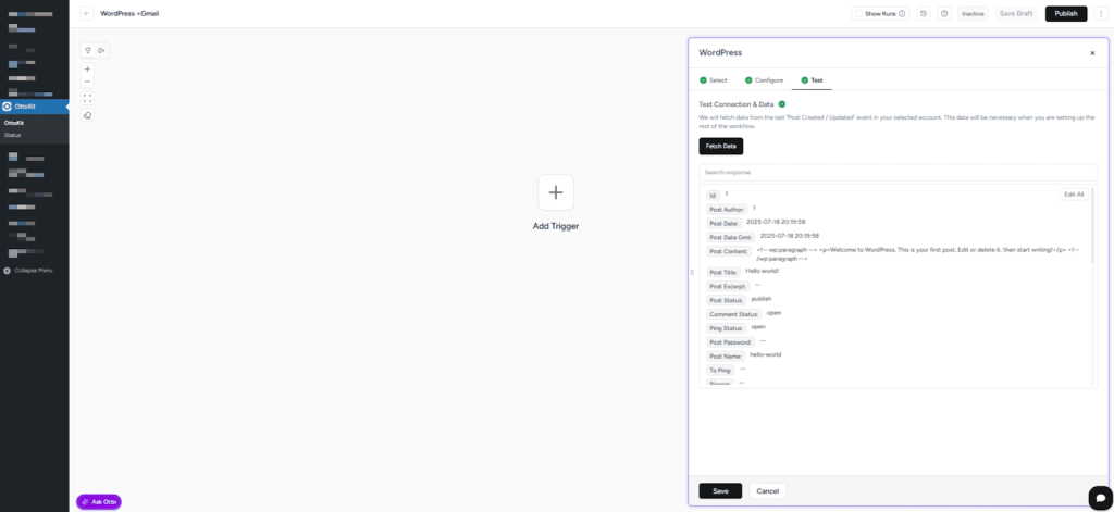 - OttoKit will pull data from a recent post on your site.