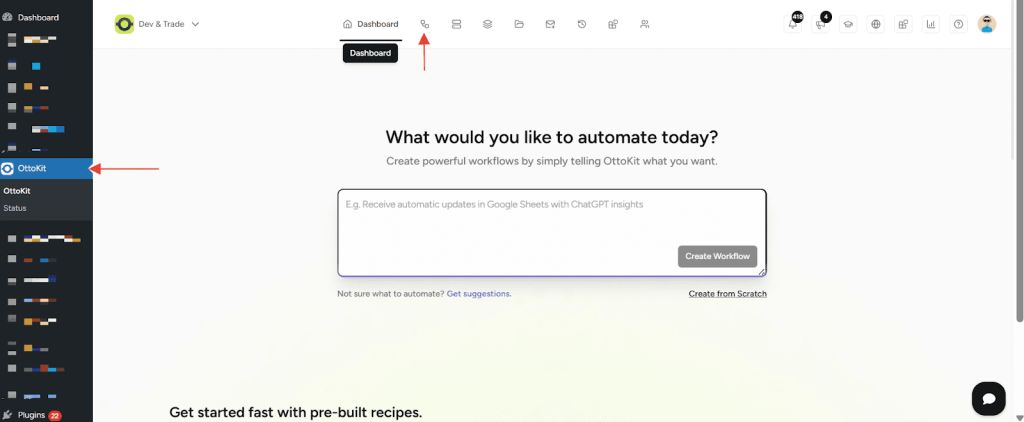- In your WordPress dashboard, go to OttoKit in the sidebar.