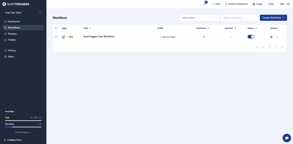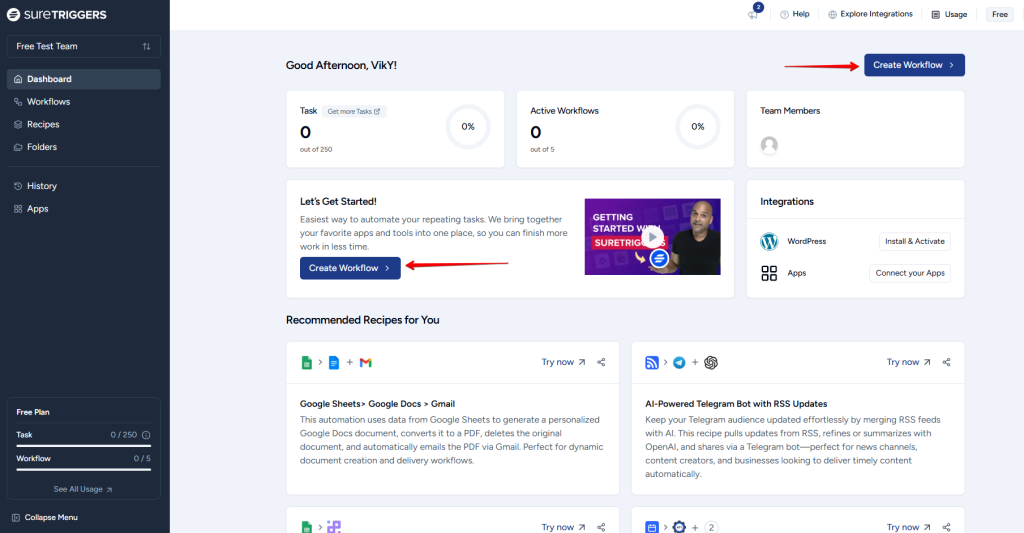 - Click on the “Create Workflow” button on the dashboard screen.