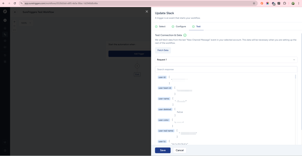 Once you’ve set up the trigger and action, you can perform the trigger event(Send a Slack message in the channel) to ensure that everything is set up correctly and working as expected.