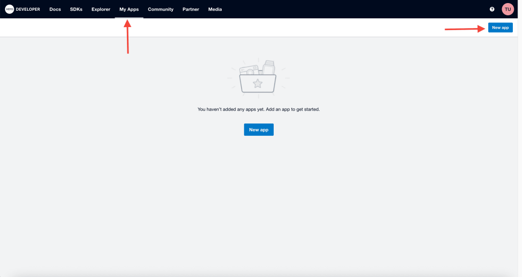- Go to the My Apps section and click New App.