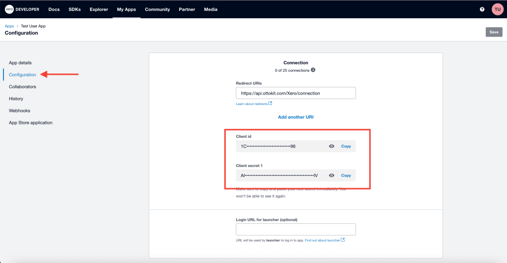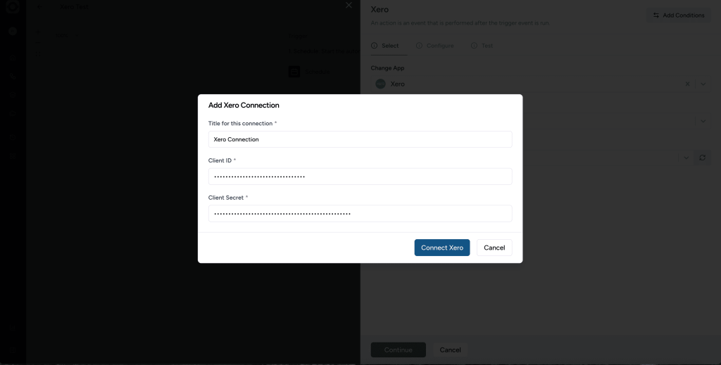 – Client Secret (from Xero) - Click the Connect Xero button.