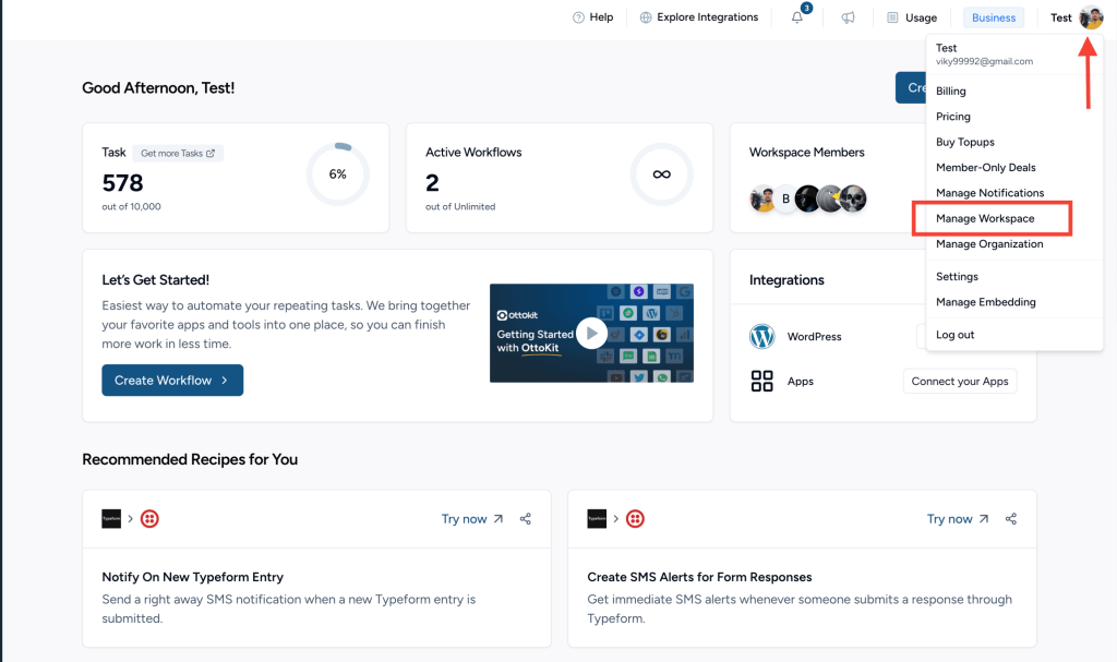 Want to collaborate with your team in OttoKit? Whether you’re building workflows together or managing automation tasks, inviting members to your workspace is the first step. With just a few clicks, you can bring teammates on board and start working smarter together.