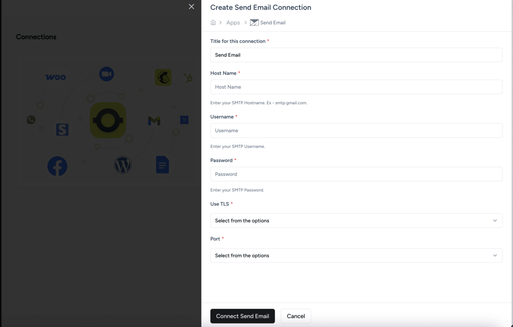 You’ll need to fill in the following important information to establish your Send Email connection:
