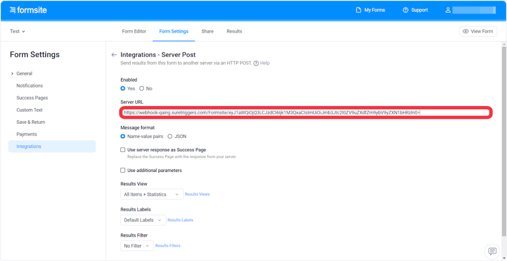 Setting Up Webhook in Formsite