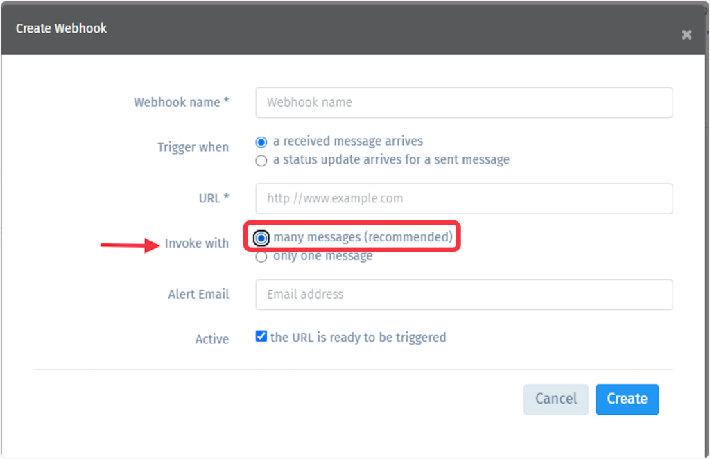 9. Select the ‘many messages’ option from ‘Invoke with’.