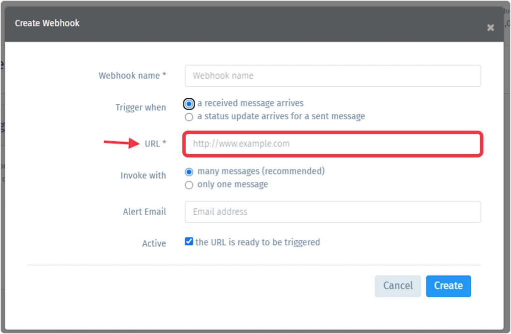 8. Paste the webhook URL to the URL field.