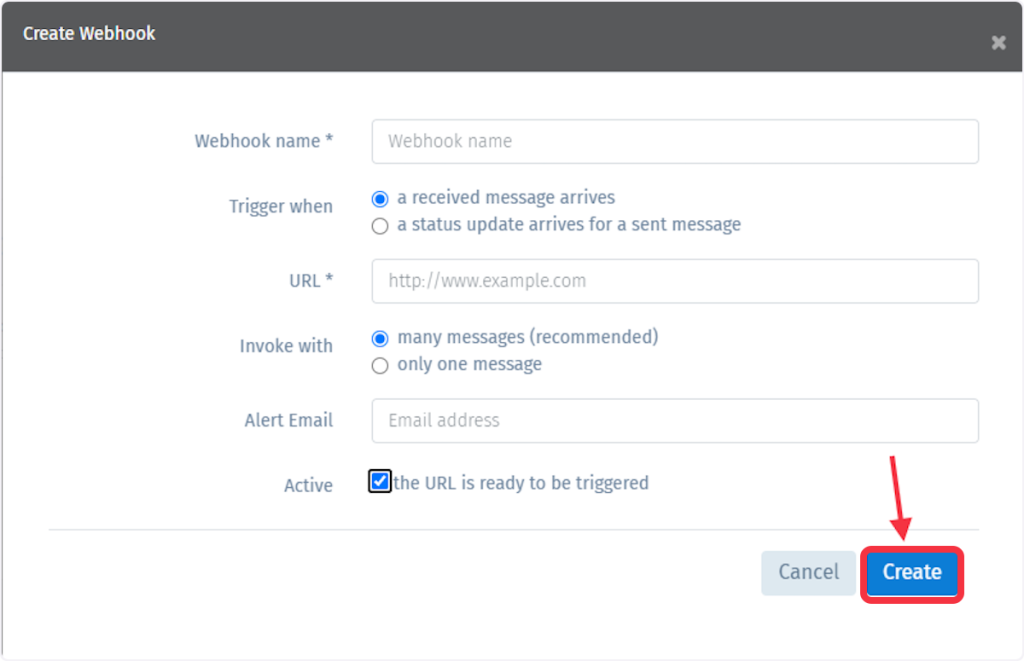 5. Click on ‘Create Webhook’.