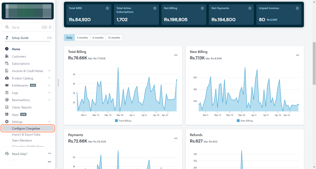 - Login to your Chargebee account.