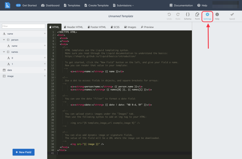 You can upload PDF templates and configure form fields in DocSpring’s template editor and can also create a template using HTML and CSS.