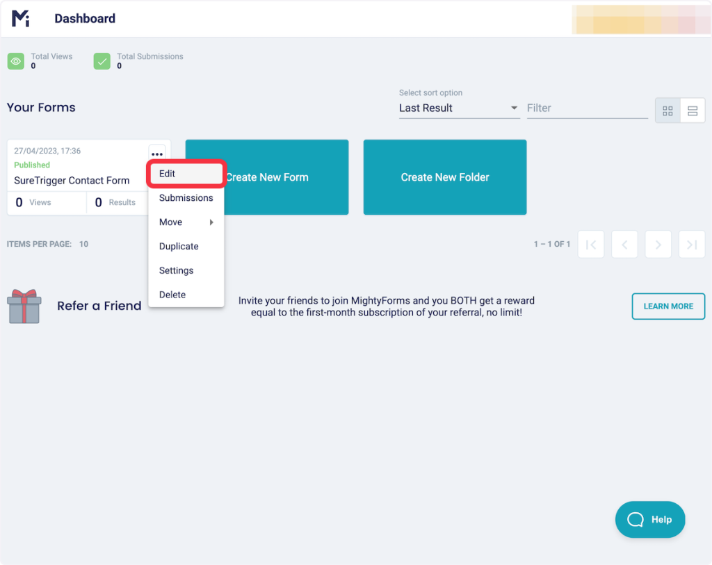2. Now select the form you wish to have a Webhook added and click Edit.