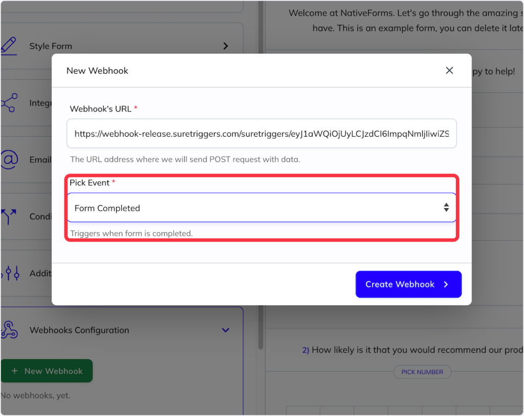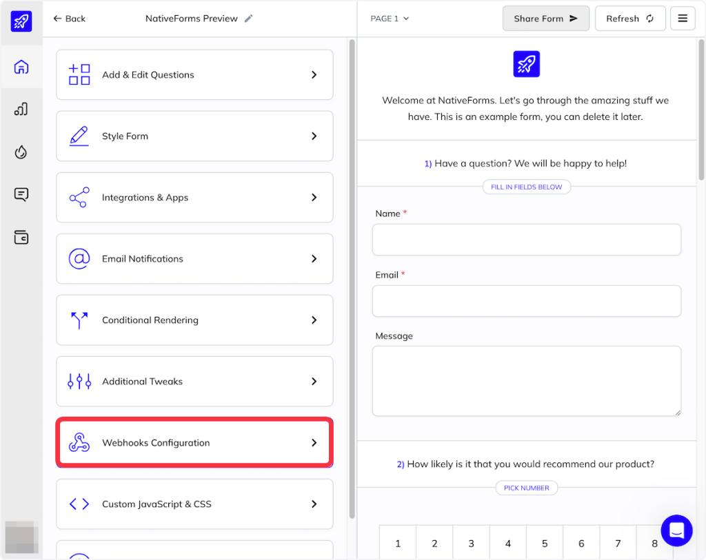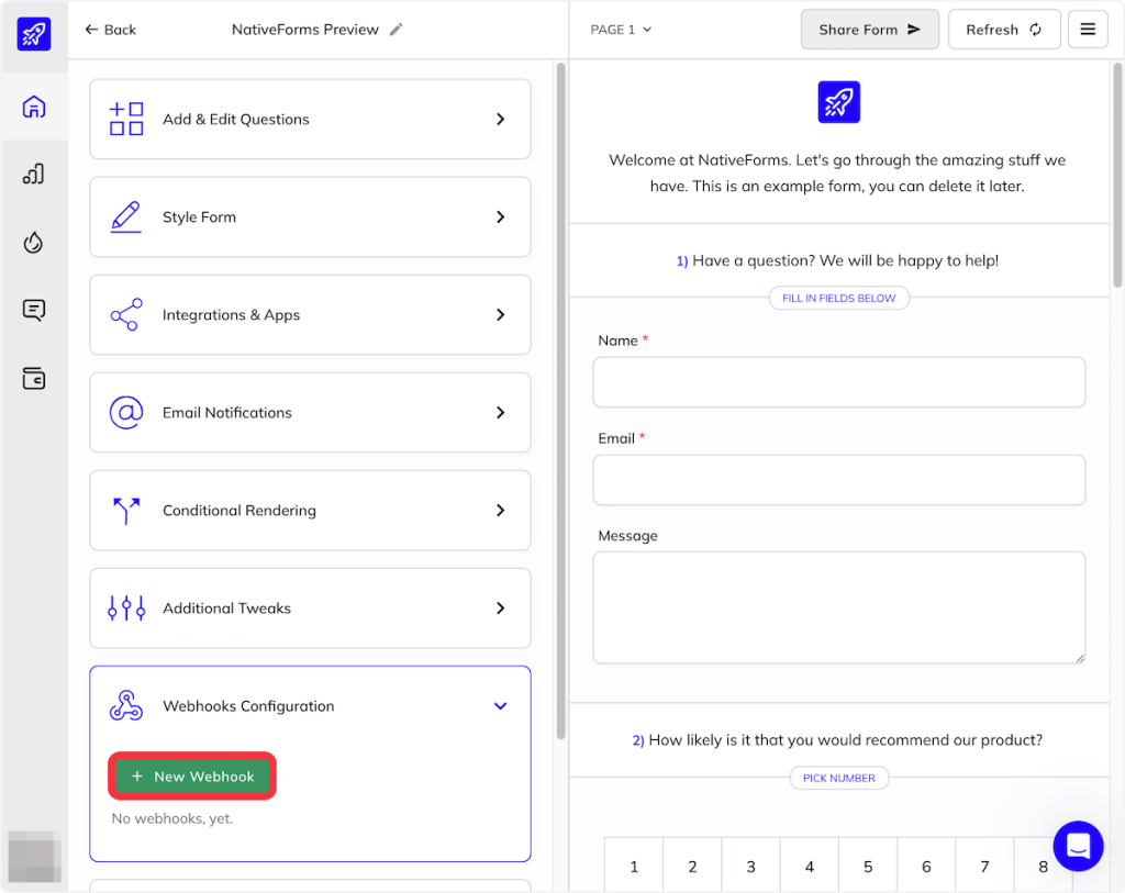 You can simply follow the steps below to add webhooks in NativeForms settings: