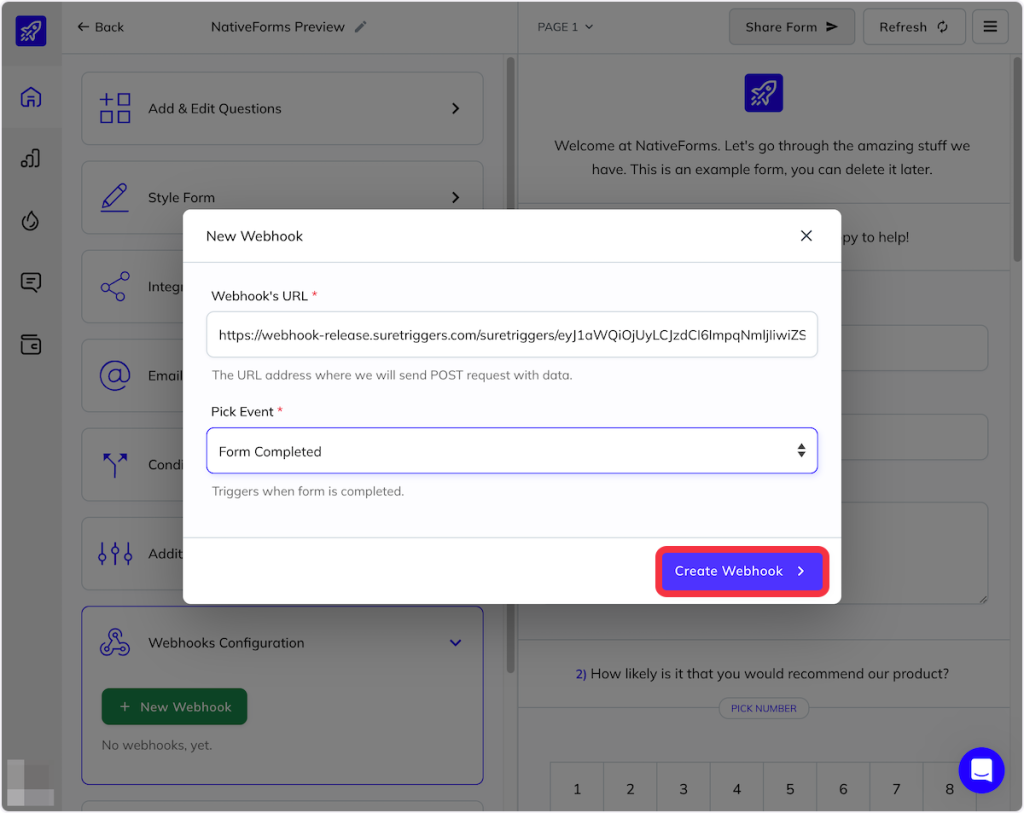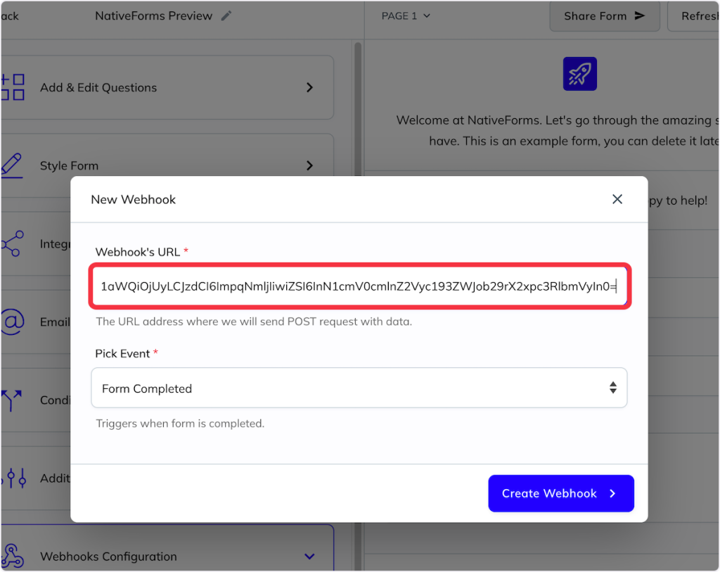 That’s it! You have successfully added a webhook to your NativeForms account.