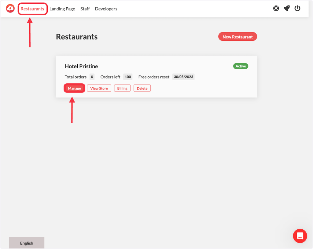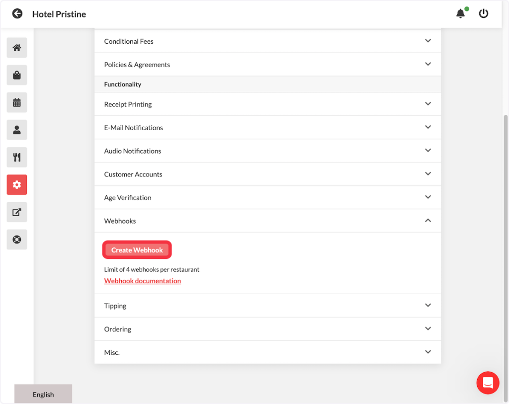 2. Navigate to Restaurants, and select the restaurant in which you want to place webhooks.