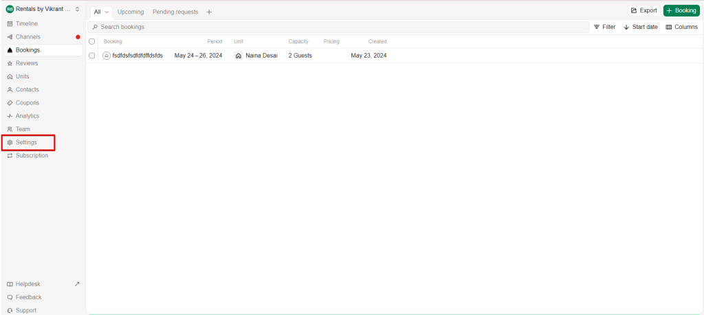 1. On the sidebar, click on ‘Settings’.