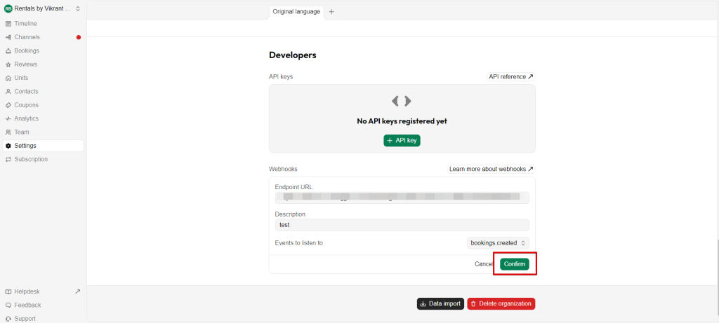 That’s it! You have successfully added a webhook to your Bookingmood account.