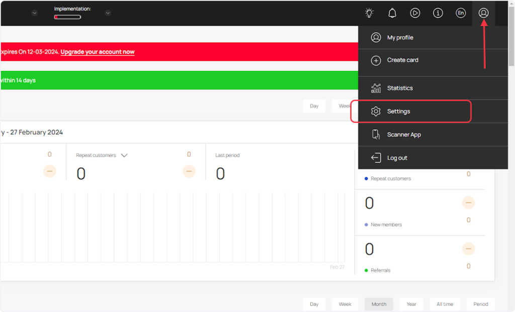 1. Navigate to the profile icon located at the top right corner, and then click on “Settings” inside the dropdown.