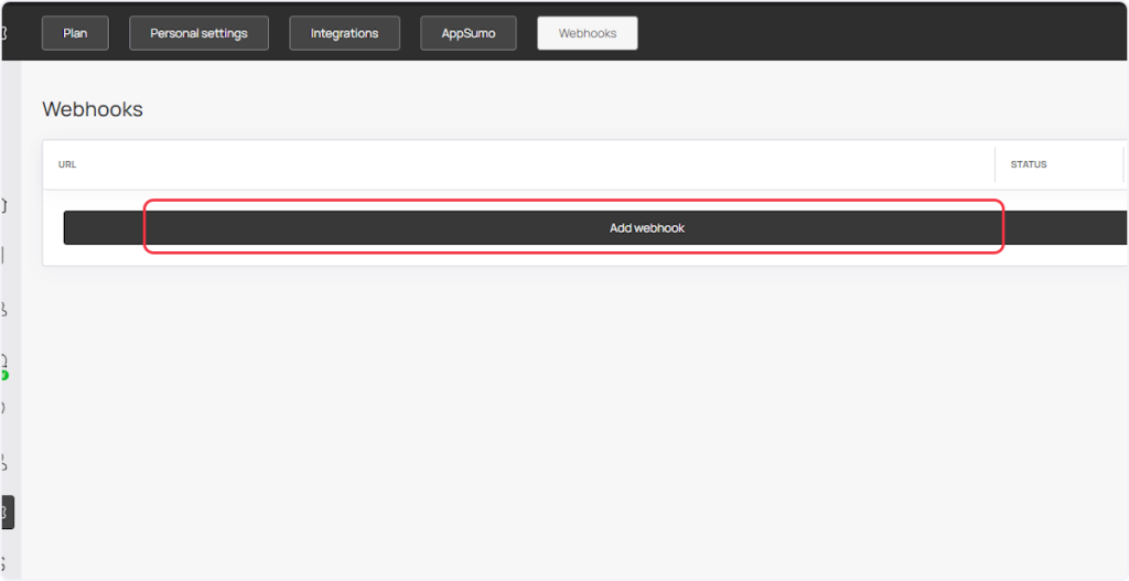 1. Click on “Add webhook”.
