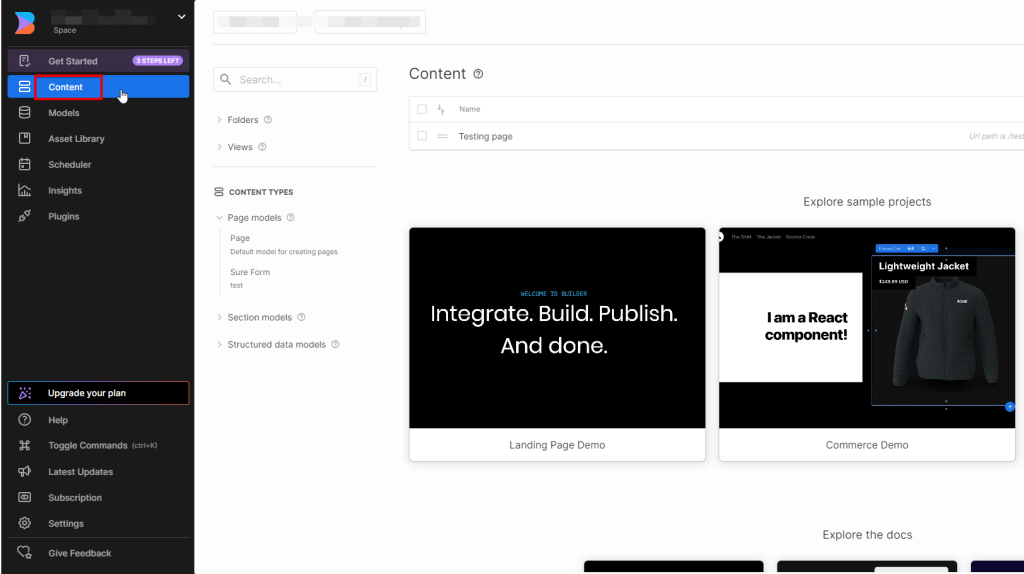 - Login to the Builder.io account.