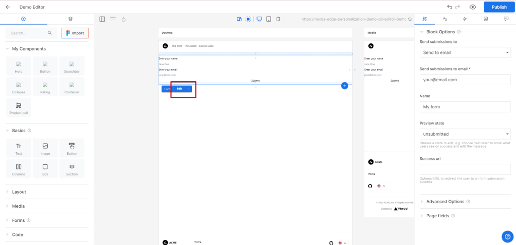 - Navigate to the form and click on the “Edit” button.