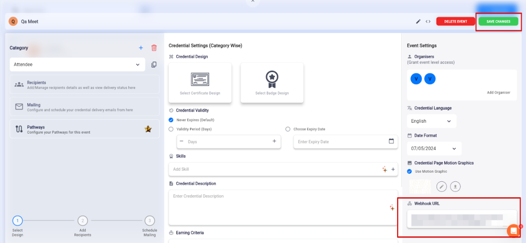 - Copy the webhook URL from the trigger flyout, paste it inside the “Webhook URL” field, and click on the “Save Changes” button to save the webhook.