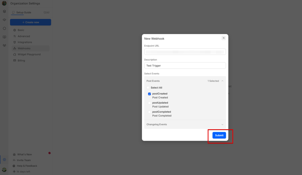 That’s it! You have successfully added a webhook to your FeatureOS account.