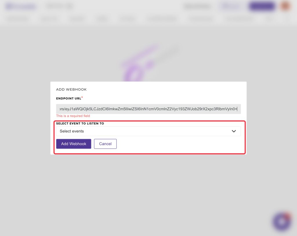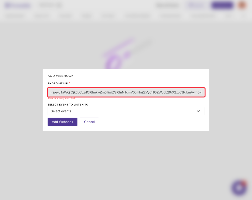 - Copy the webhook URL and paste it into the Endpoint URL field.