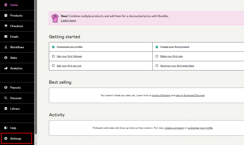 - Login to your Gumroad account.