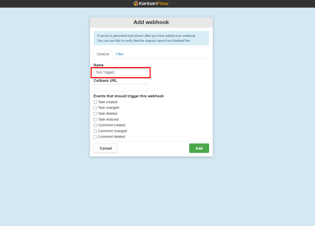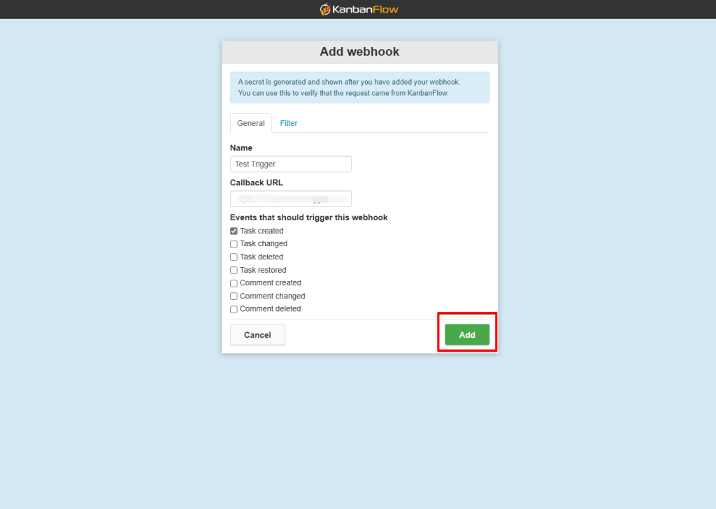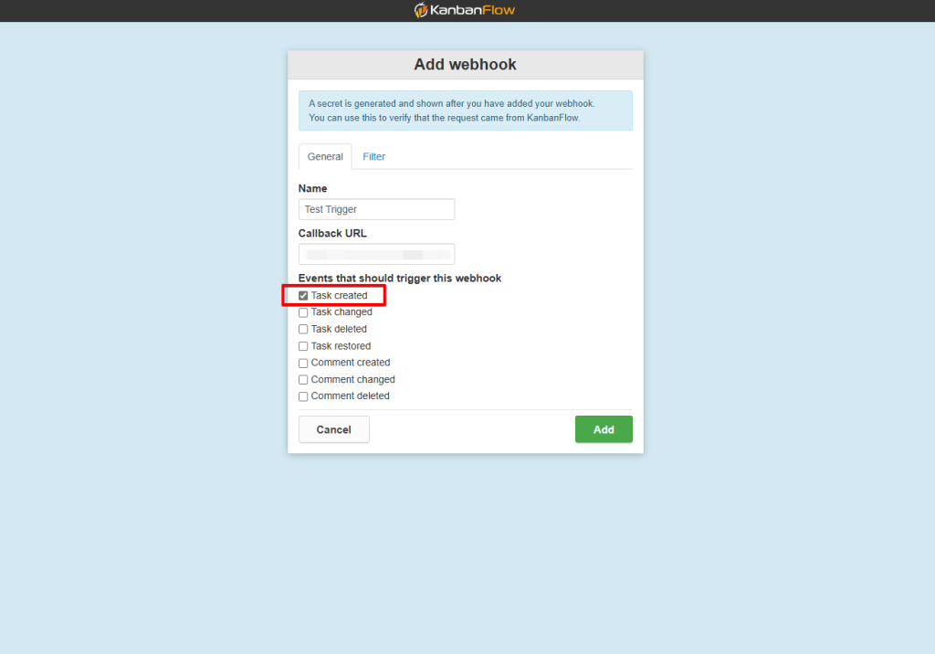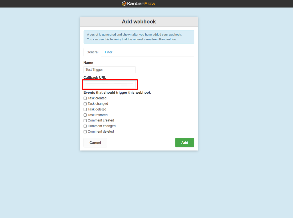That’s it! You have successfully added a webhook to your KanbanFlow account.