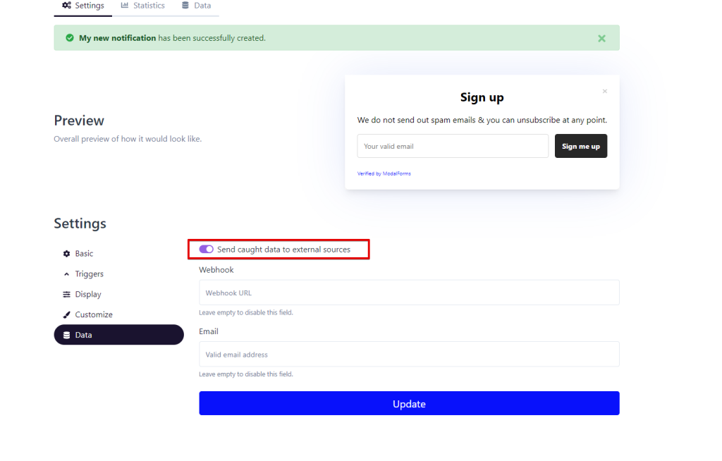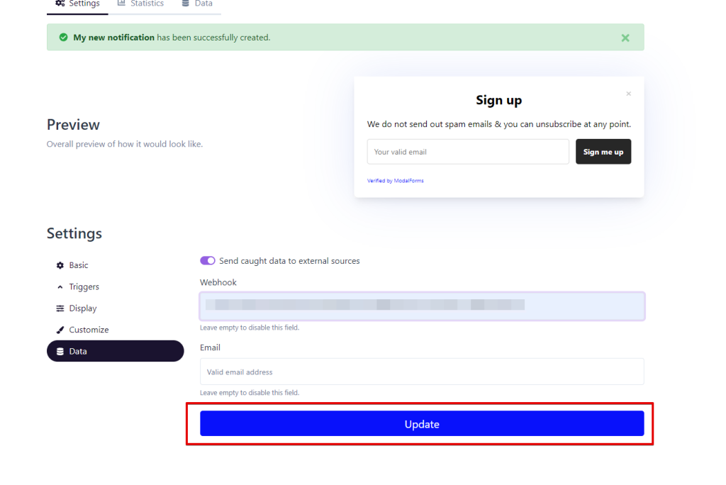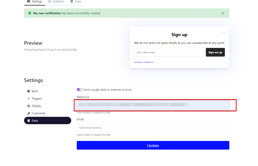 That’s it! You have successfully added a webhook to your Modal Forms account.