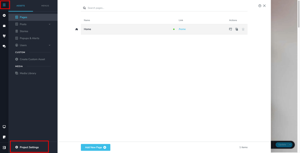 1. Now, click on the hamburger button at the top to expand the sidebar, and then click on the “Project Settings” button at the bottom.