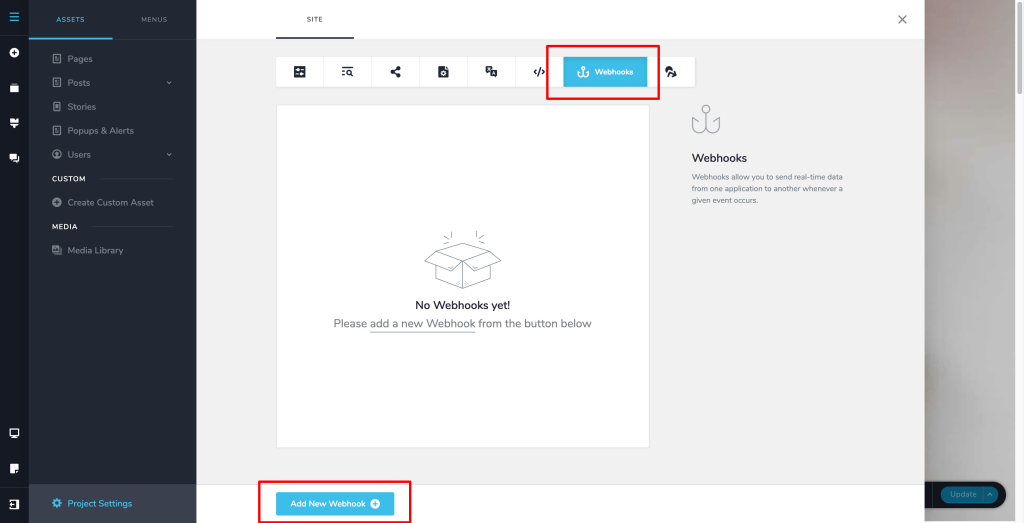 1. Click on the “Webhooks” tab and then click on the “Add New Webhook” button.