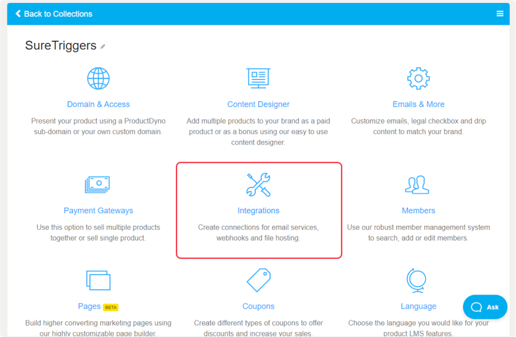 1. Then click on ‘Integrations’.
