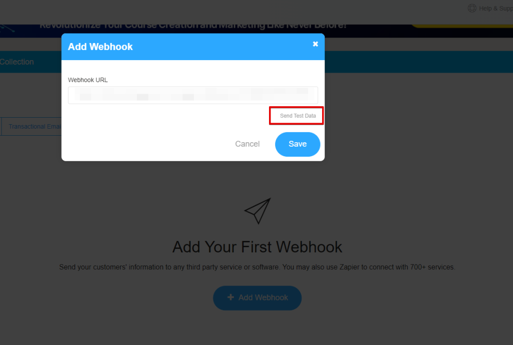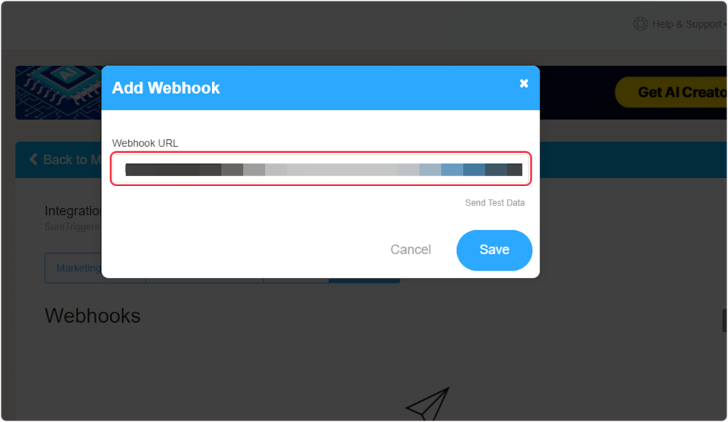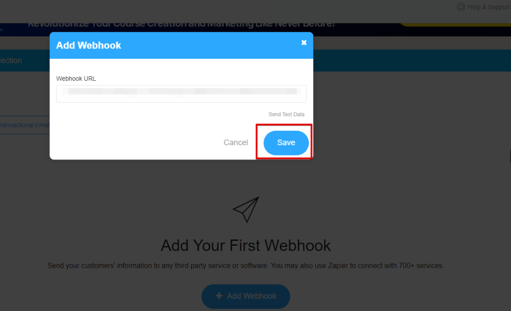 1. Click on the “+ Add Webhook” button.