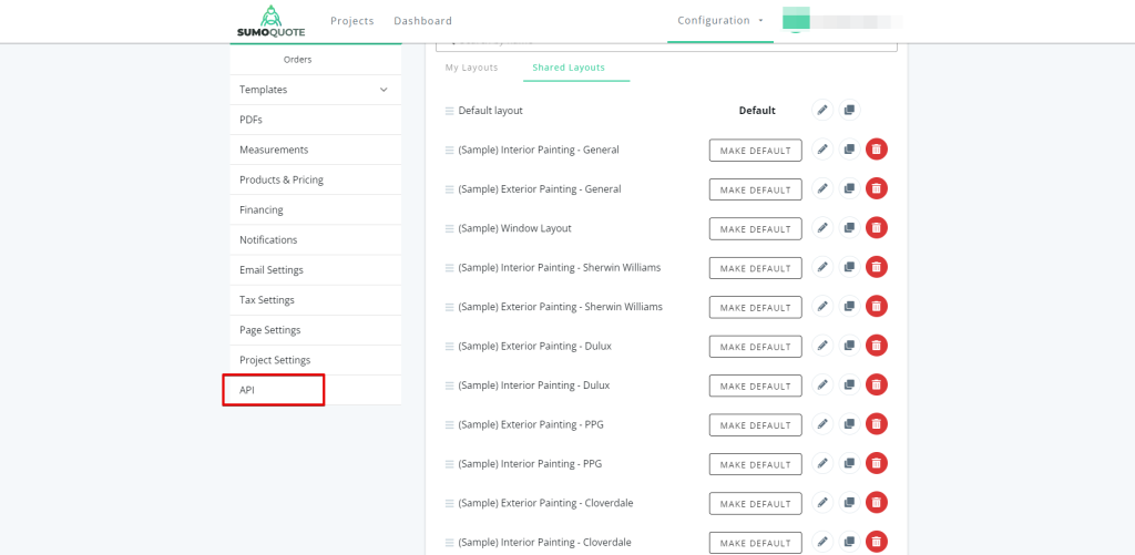 - On the sidebar, click on ‘API’.