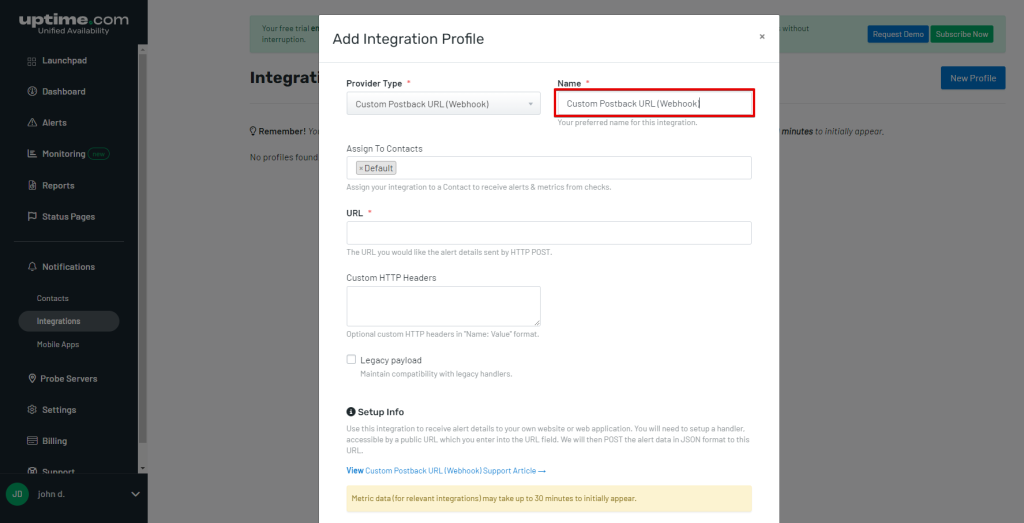 Setting Up Webhook in Uptime