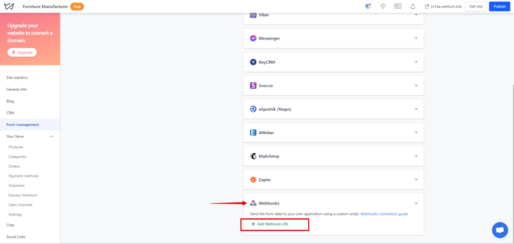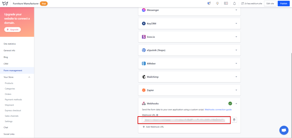 That’s it! You have successfully added a webhook to your Weblium account.