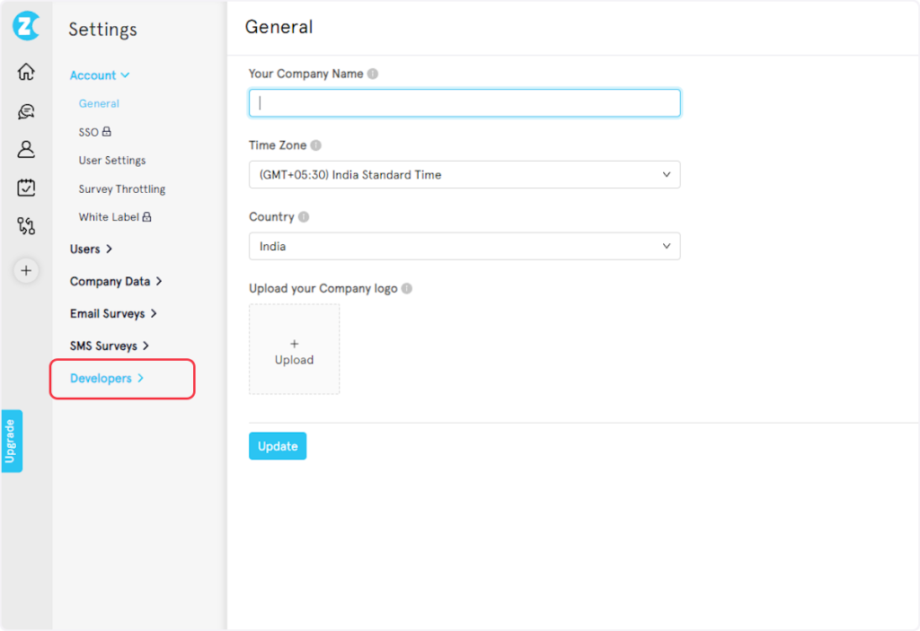 - Select ‘Developers’ under the sub-menu of the Settings.