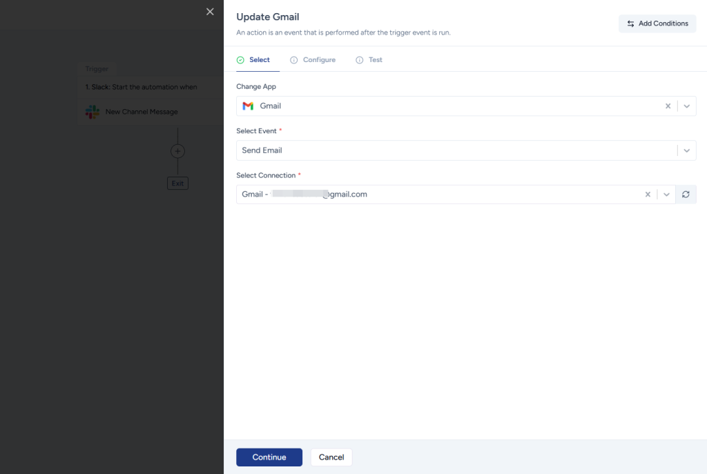 - Once connected, you can start creating workflows and automation using Slack triggers and actions.