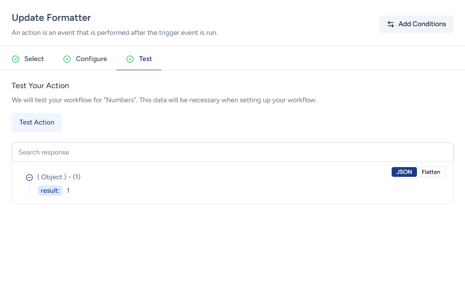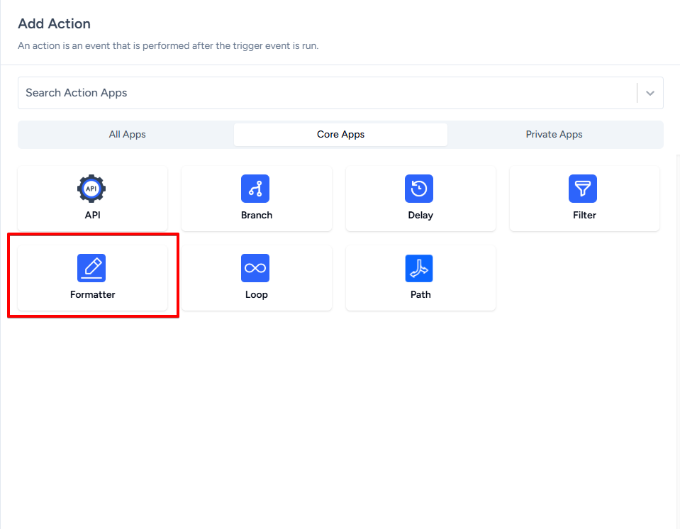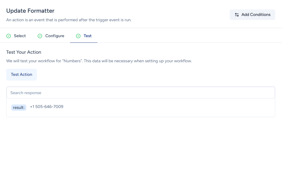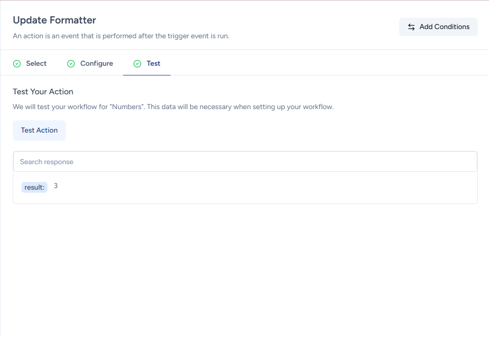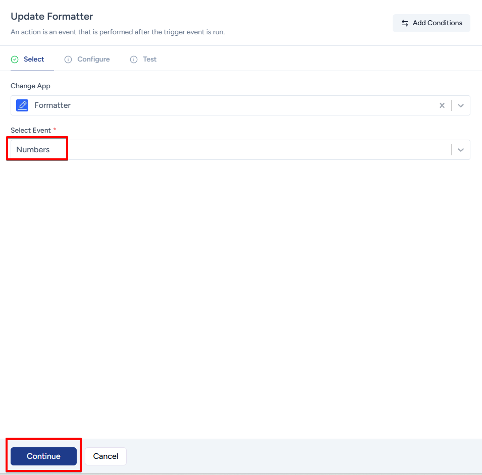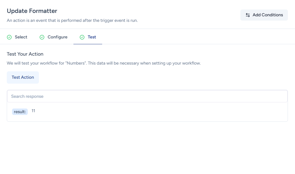 To use the Number Formatter, simply add the Formatter app as an action in your workflow.