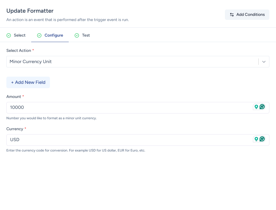 If your workflow involves processing monetary transactions and you need to display the amount in cents, you can use the Minor Currency Unit formatter to convert the value accordingly.
