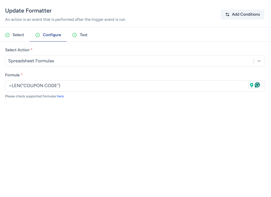 With Spreadsheet formulas action in OttoKit, you can use spreadsheet formulas in your workflows.
